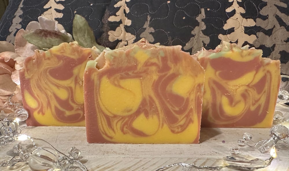 Mango Mango is a beautiful handmade soap with a tropical scent that smells just like fresh picked mangoes. It has top notes of Mango, middle notes of Mango, and of course bottom notes of nothing but Mangos. This is where it gets his name, Mango Mango!❤️